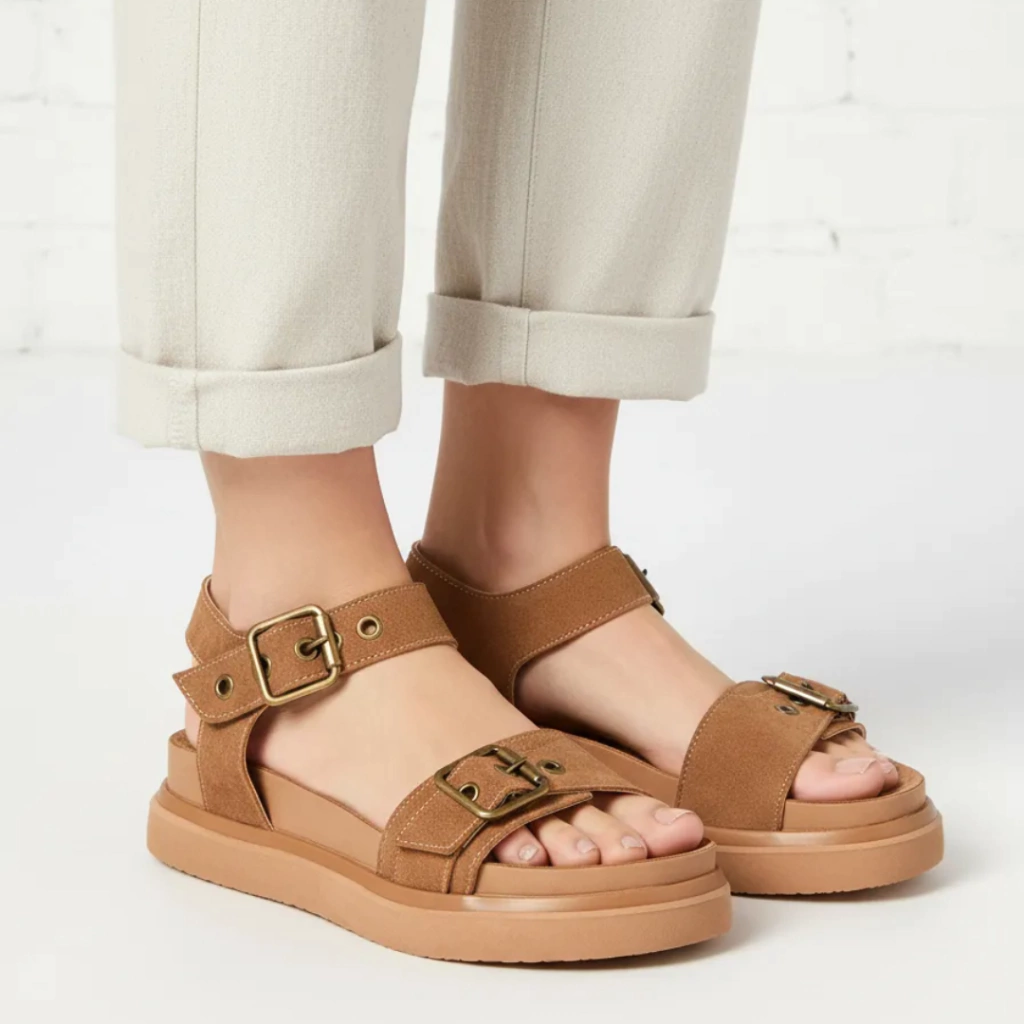 Sandalias con doble faja con hebillas metalicas