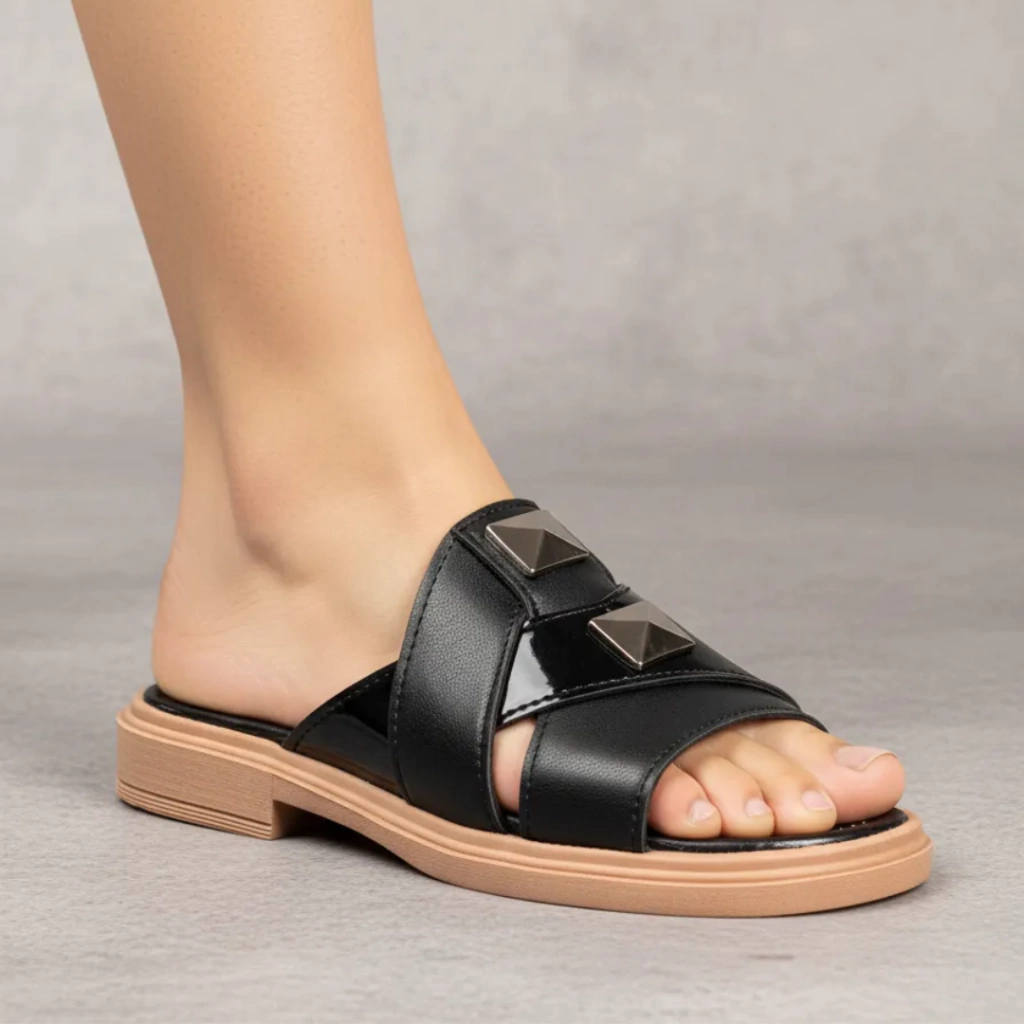 Sandalias con faja ancha, diseño entrelazado con tachas
