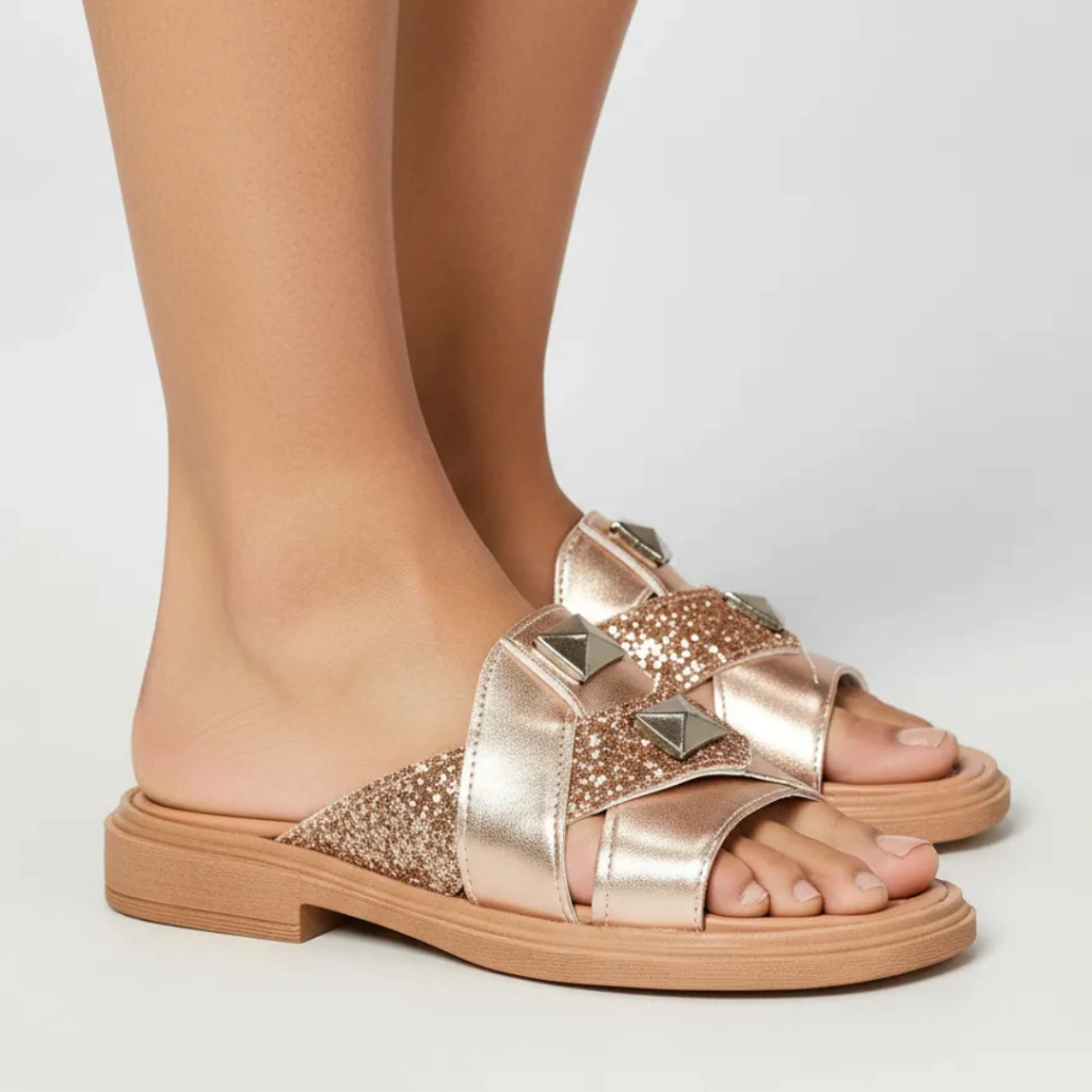Sandalias con faja ancha, diseño entrelazado con tachas