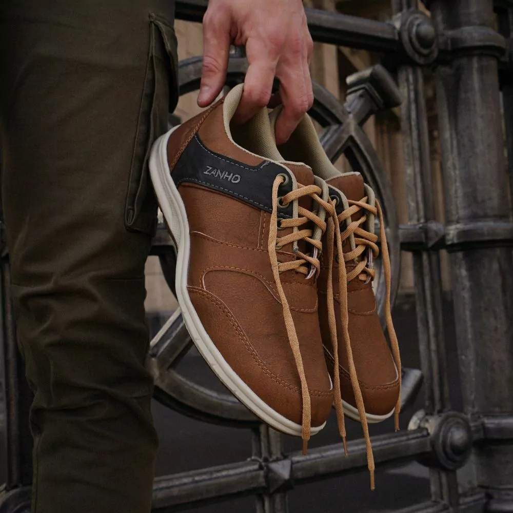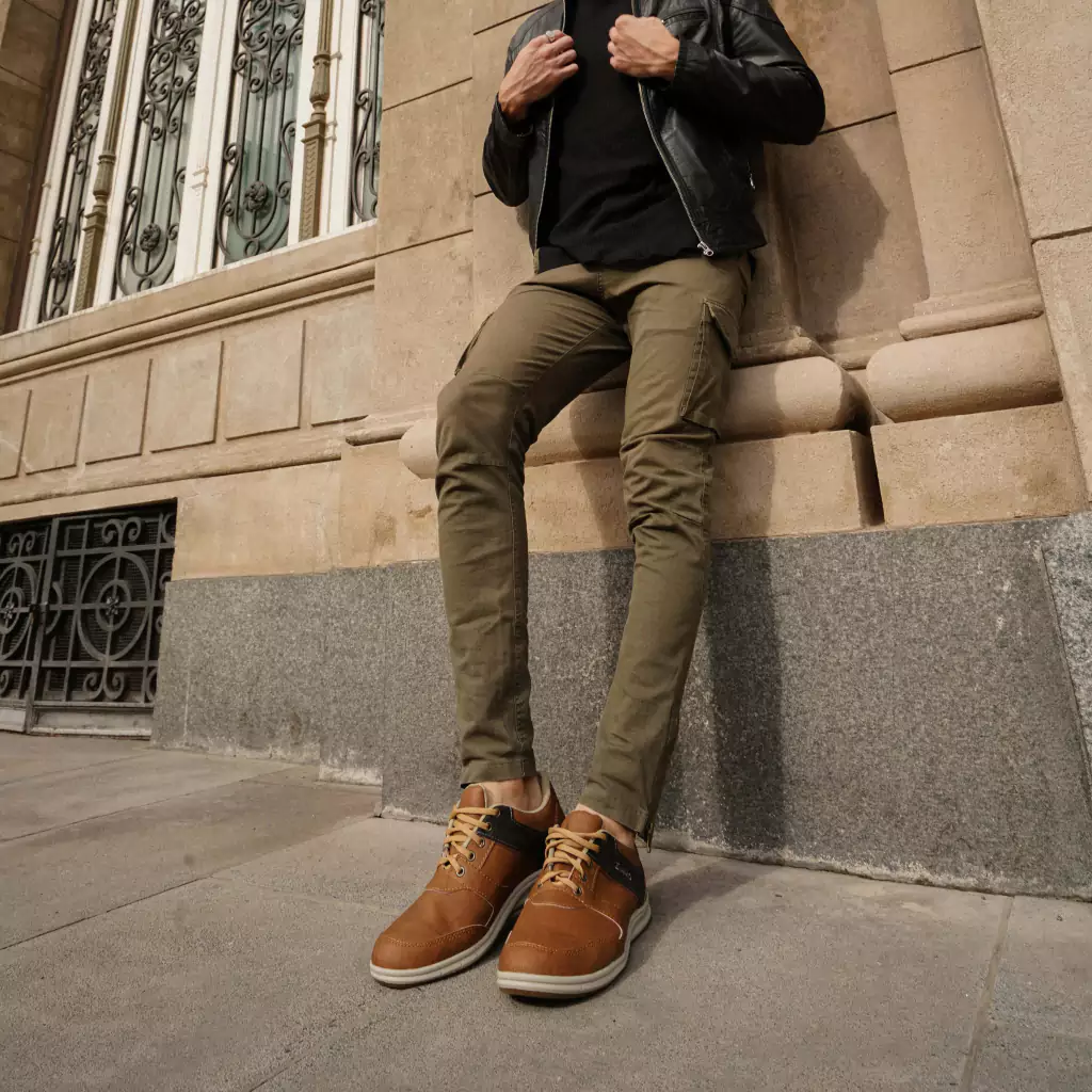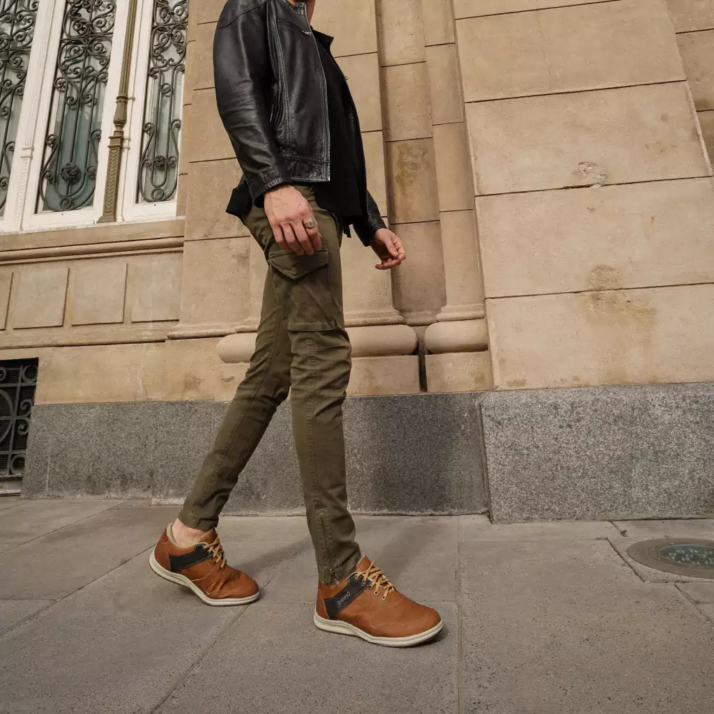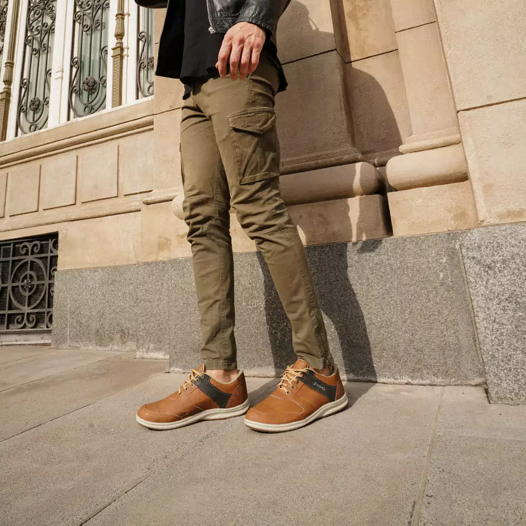 Zapatillas urbanas de tela tejida con tiras de eco cuero y combinación de colores